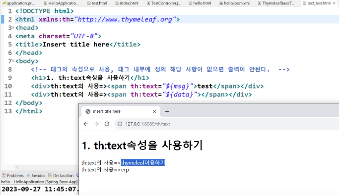 (Thymeleaf 기본 문법) 타임리프 text 속성 본문